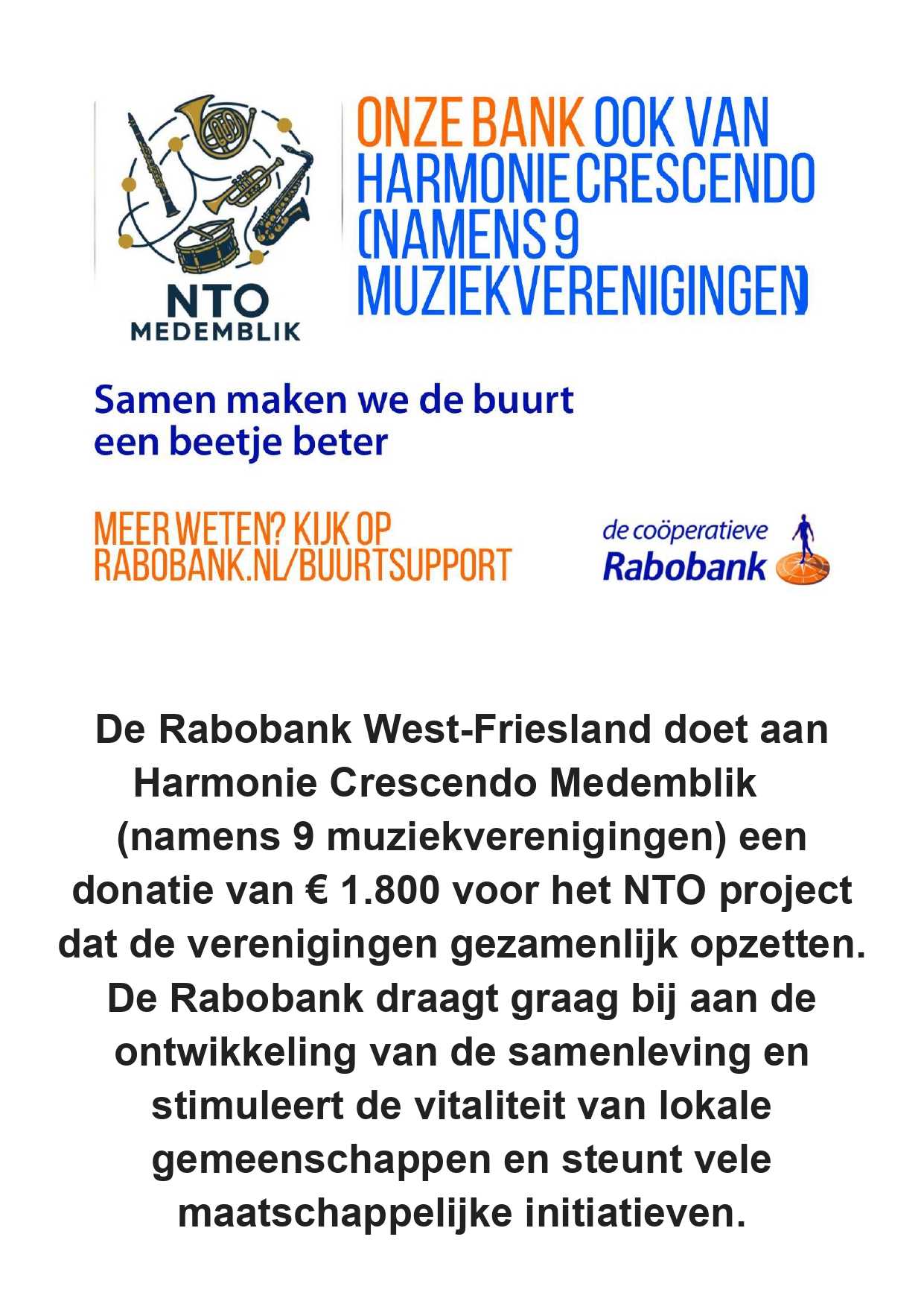 Dat kan bij Nieuw Talent Orkest Medemblik!